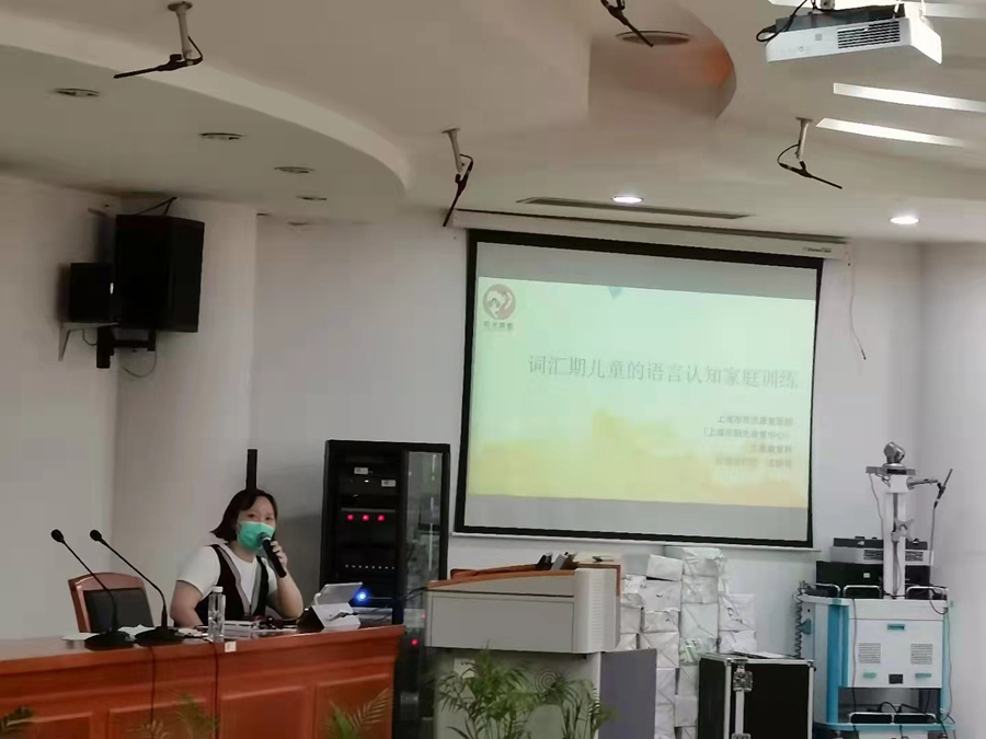 活动现场,治疗师通过图片演示等形式生动形象地讲解了家庭中语言认知的训练技巧,并为家长们进行示范。家长积极提问,跟着老师一起思考,了解了可以利用儿童现有的语言认知水平,通过多感官学习,在生活自然情景及亲子互动中进行快乐教学,促进孩子认知语言功能水平的发展。