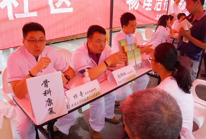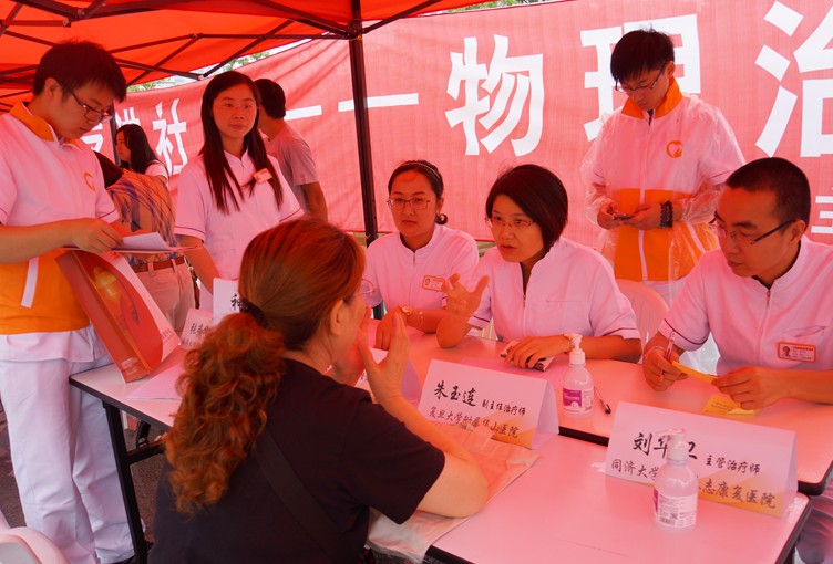 本次义诊中心组织了由康复治疗部副主任林建华、康复治疗师长刘华卫、张蓓华等专业骨干组,以及来自复旦大学附属华山医院、交通大学附属第一人民医院、交通大学附属瑞金医院的近10位知名康复专家一同坐诊,共计为130余名周边居民群众提供物理治疗的介绍、咨询和亚健康预防宣教服务。