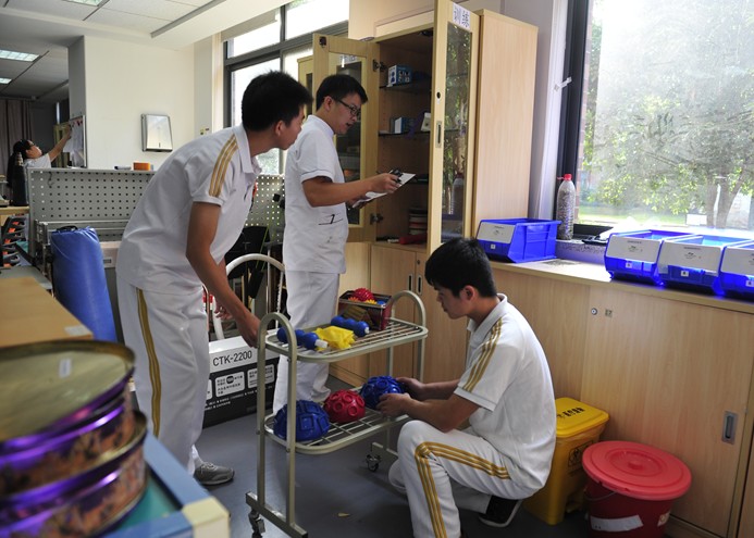中心办公室统筹协调各部门落实相关工作,并就接待、场地、人员、车辆等进行周密部署;康复治疗部除了做好参赛人员的选拔培训外,还负责落实各项比赛道具;计划财务科针对大赛需求,确保各项物资及时到位;对外协作科为大赛精心制作各类宣传材料,及时开展紧锣密鼓的宣传,并邀请各知名媒体前来观赛;运行保障科针对比赛期间人员餐饮住宿、设备调试、考场布置、安全保障等各项工作进行周密安排。各部门相互配合、通力协作,准备工作有条不紊。