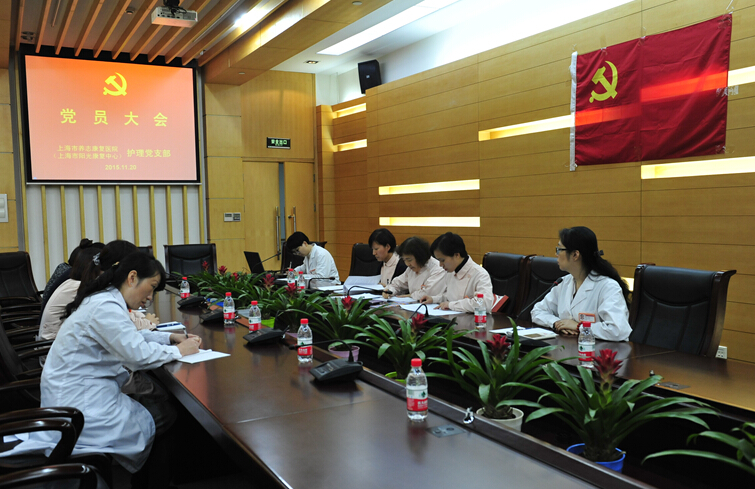 阳光康复中心护理党支部按照年度发展党员计划,于11月20日下午召开全体党员会议,就接收吴爱荣同志为中共预备党员进行了专题讨论,会议由党支部书记施娟同志主持。