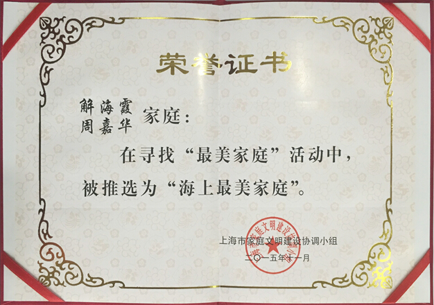 海上最美家庭 传播文明新风 ——阳光康复中心解海霞荣获“海上最美家庭”荣誉称号