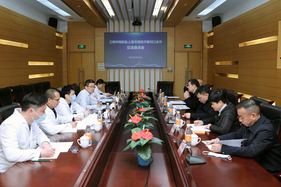 2月22日,福建省三明市残联党组书记、理事长、二级巡视员刘闽华一行6人来我院参观考察。市残联办公室副主任邓江、医院(中心)党委书记翟华、副院长祁奇等接待考察团一行。