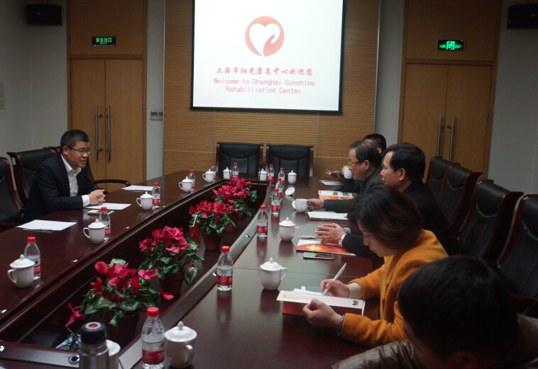12月24日上午,扬州市残疾人联合会理事长张跃一行8人参观考察阳光康复中心。中心副主任傅传威陪同参观并出席座谈。