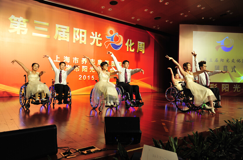 颁奖仪式间隙,阳光“艺术家们”在舞台上大放异彩,舞蹈《我在春天等你》、歌曲《梨花又开放》等让大家陶醉在曼歌妙舞中;中心还特邀上海木偶剧团国家一级演员刘国栋为大家带来别开生面的提线木偶表演;由中途之家脊髓损伤伤友联袂演出的情景舞蹈《请为轮椅铺一条小路》也向在场观众展示了他们在中心接受训练后的喜人成果与顽强不息的自信风采;王丽琴老师与乐永林书记友情献演了一首美妙悠扬的《望月》;中心合唱团的最后亮相,中心主题歌《走进阳光》与慷慨激昂的《美丽的中华》将闭幕式气氛推向了高潮。在持久不息的掌声中,市残联副理事长季敏宣布第三届文化周闭幕。