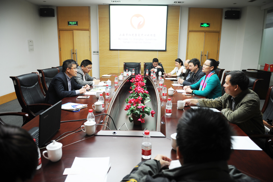 3月29日,南宁儿童康复中心主任韦美宾、副主任陈广等一行9人,在阳光康复中心副主任傅传威陪同下参观考察中心并进行座谈。