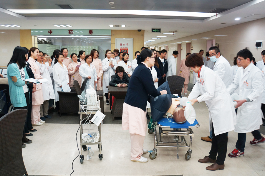 为了提高门诊医务人员对突发事件的应急处置能力,切实保障患者的生命安全和健康。4月28日中午,阳光康复中心开展门诊患者突发疾病应急预案演练,门诊各科室及ICU全体医务人员共计48人参加演练。