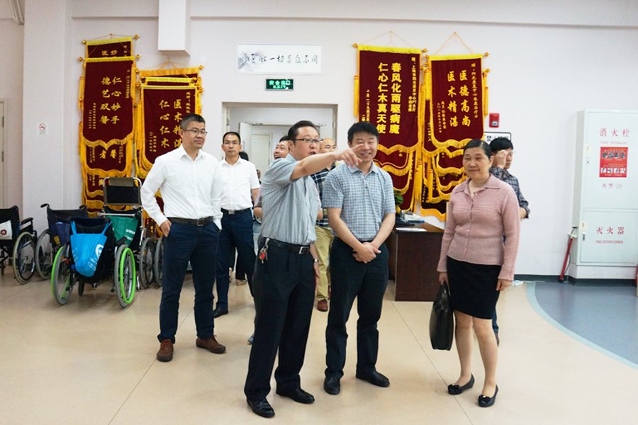 刘骏主任向岳阳市残联考察团大致介绍了中心的整体布局、科室设置和二期规划,随后带领大家实地参观了医院各个治疗区域。虞慧炯处长就岳阳市残联领导关心的上海市残疾人康复政策、创业就业孵化、辅助器具服务等问题做了详细介绍。考察团对中心完善的基础设施以及与国际接轨的服务理念给予了高度评价。