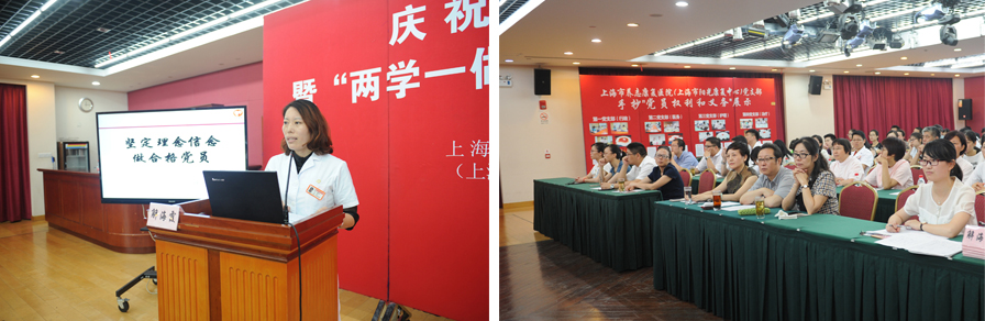 活动伊始,乐永林书记首先向大家通报了近期在党员和群众中开展的《党员思想状况调查问卷》统计情况。紧接着,伴随着《红旗颂》悠扬激昂的旋律,一段“两学一做”学习教育阶段回顾短片带领大家重温了2016年1月至6月间,中心党总支从学习教育准备、动员部署、到目前开展的第一阶段学习教育的相关情况,大家深深感受到医院(中心)浓厚的学习氛围和广大党员高涨的学习热情。