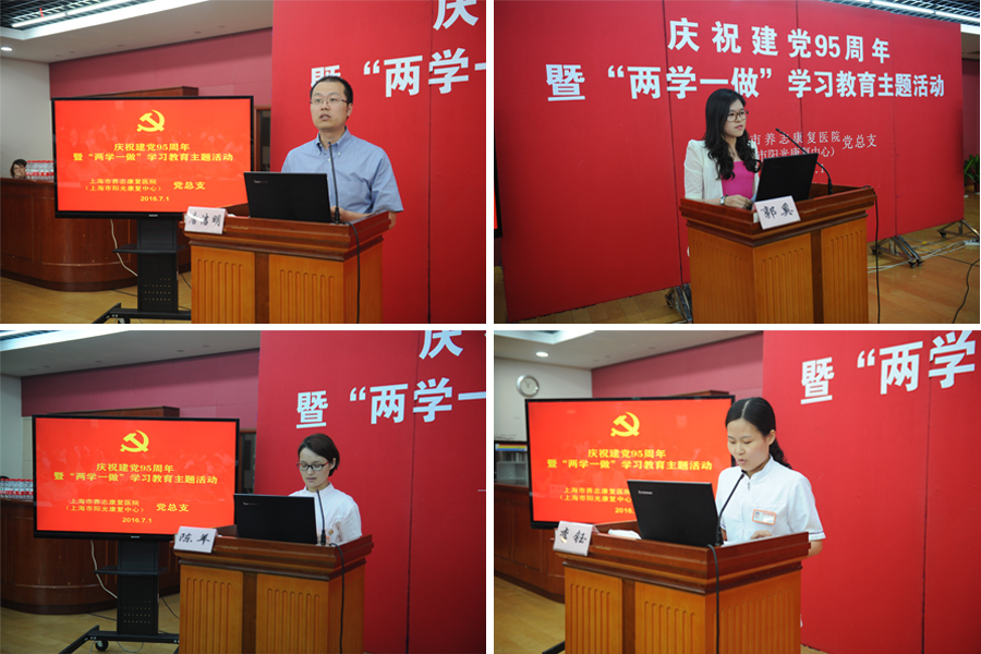 在党员主题演讲环节,来自医院(中心)4个支部的党员代表分别以《我在党旗下》、《不忘初衷,坚守信仰》、《寻访红色起点,向优秀看齐》、《现实•重拾》为题进行真情演讲,与大家分享各自在为理想信念而奋斗的过程中的所思、所为和所悟。