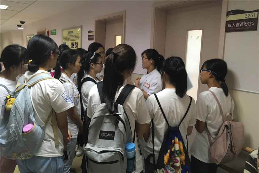 会前,全体新生及家长实地参观了医院(中心)的门诊区域、治疗区域、康复病区、教学区域和实验室等,对专业的康复机构有了直观地了解和认识。