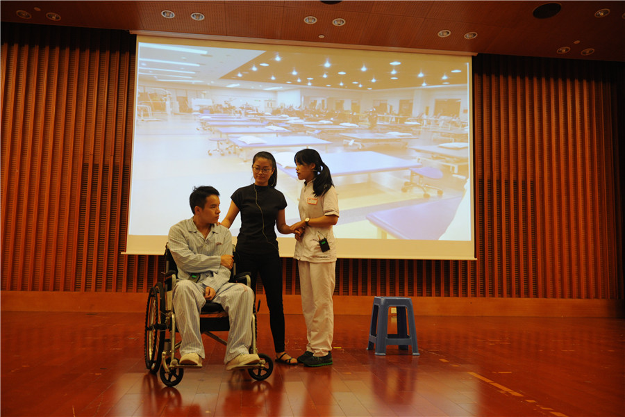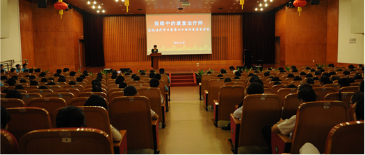 活动由一段记录治疗师们工作成长点滴的VCR拉开序幕。随后,医院(中心)党总支书记乐永林代表班子致辞,向全体治疗师致以节日的问候,对大家在工作中所取得的成绩表示了肯定,并就今后工作提出了希望和要求。接着,在悠扬的钢琴声中开始了“我眼中的康复治疗师”主题演讲,演讲者们分别从医生、护士、学生、患者等角度,结合工作、学习或就医时的经历,描述了各自眼中的治疗师形象,表达了对治疗师或尊敬或感动或自豪或感激的情结。活动中,穿插了由治疗师们自编自导自演的小品《心声》以及康复知识有奖问答,在欢声笑语中为大家普及了康复知识。活动最后,康复治疗部副主任林建华代表治疗师团队发言,希望与大家一起为理想而不懈奋斗。