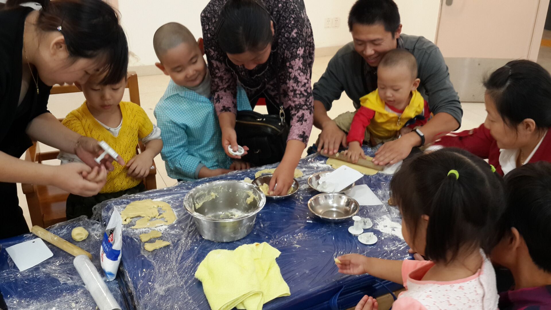活动开始,家长志愿者给孩子和家长们讲解了黄油、鸡蛋、糖粉、奶粉的调配比例以及注意事项,并将制作任务分配给每个家庭。接着,孩子和家长们在志愿者的指导下,通过饼干模具和烤箱,制作出了香甜可口的饼干。饼干的香味、爸妈的陪伴、动手的乐趣,孩子们的脸上洋溢着幸福的笑容。